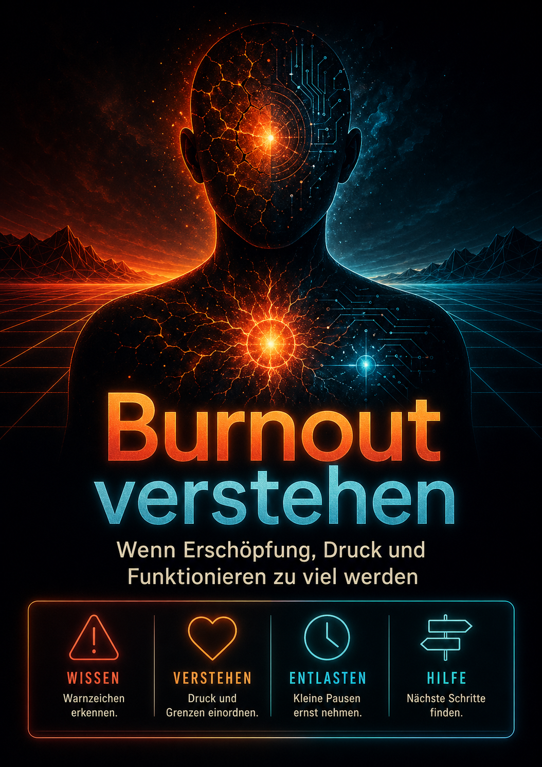 Burnout beschreibt einen Zustand tiefer Erschöpfung nach längerer Belastung. Besonders häufig wird er mit Arbeit verbunden. Er kann aber auch durch Pflege, Familie, Ausbildung, Studium, soziale Verantwortung, Existenzdruck oder eine Mischung aus vielen Anforderungen entstehen. Dieses Handbuch beschreibt Burnout alltagsnah. Es geht um Warnzeichen, Körperstress, innere Antreiber, Selbstwert, Beziehungen, Arbeit, Erholung, Rückkehr und Hilfewege. Erkennen Warnzeichen früher wahrnehmen.